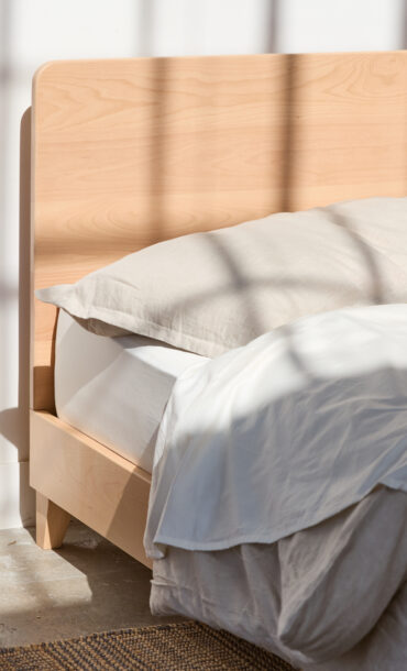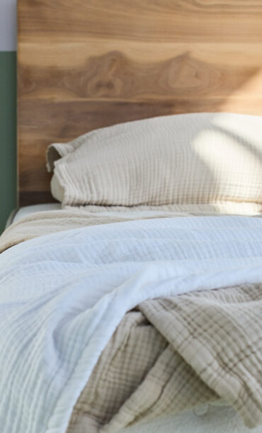 To get the Cozy Boho look – look no further than our Blonde City Bed to set the tone with its pink, natural tones. A taupe wall color like Mohave Gathering from Backdrop Paint is a nice palette to balance the warm tones in the wood. Add in some creamy and cozy textures with Organic Cotton sheets, a gauze blanket, and some deliciously lofty down pillows and duvet.